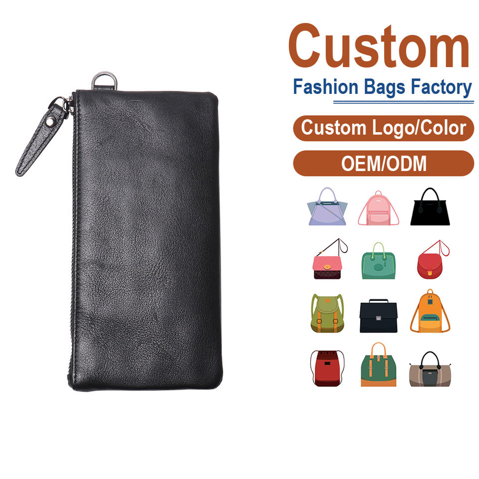 กระเป๋าสตางค์ยาวหนังแท้สีดำสำหรับผู้ชาย ซิปยาวเต็มใบ ป้องกันการโจรกรรม ลายเรขาคณิต | โรงงานรับผลิตแบบ OEM/ODM สำหรับธุรกิจในเมือง