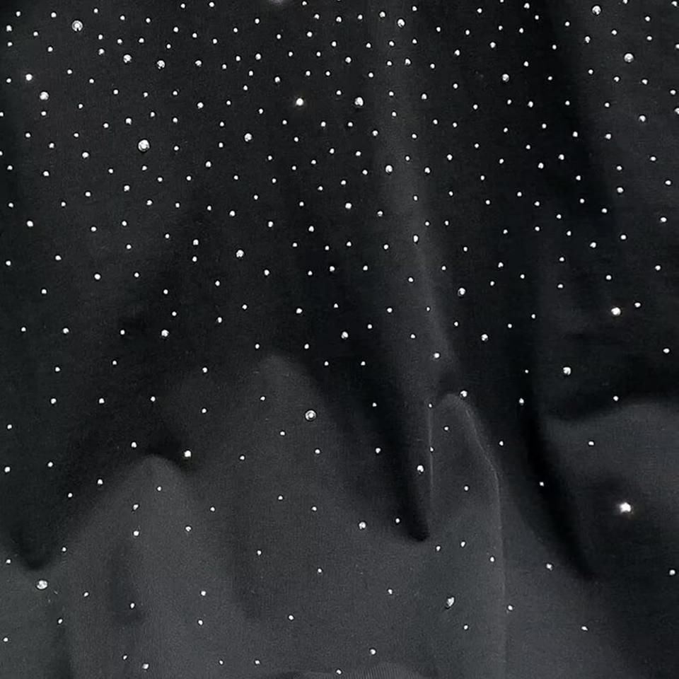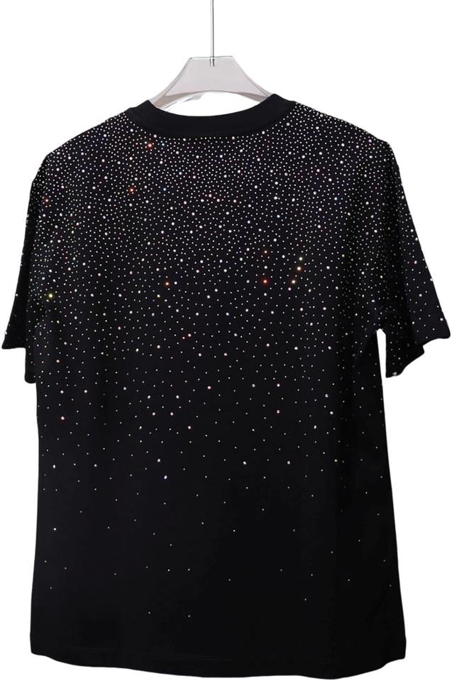 เสื้อยืดผู้ชายสีดำประดับเพชร เสื้อผ้าสตรีทแวร์ประดับเพชรระยิบระยับ แขนสั้นระบายอากาศได้ดี เสื้อแฟชั่นสำหรับออกงานกลางคืน