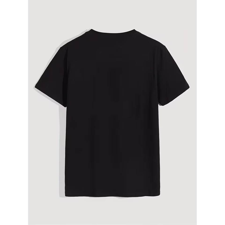 เสื้อยืดคอกลมแขนสั้นผู้ชาย สีดำ ผ้าฝ้ายย้อมเส้นด้าย พิมพ์ลายไก่ตัวใหญ่ ผ้าฝ้ายแท้ รุ่น WU JIANZHAN รุ่น 838