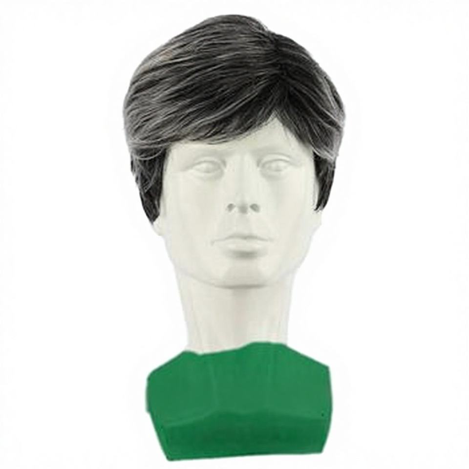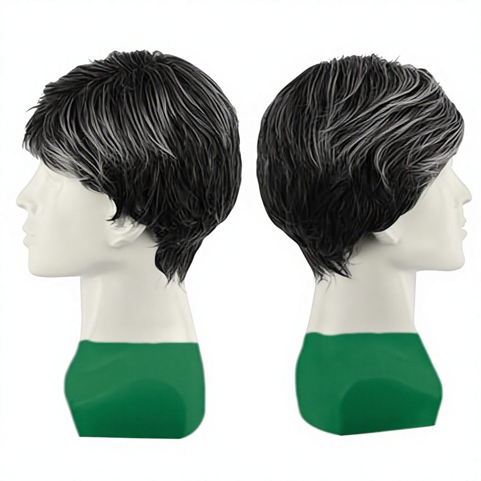 วิกผมหยิกสั้นสีดำสำหรับผู้ชาย วิกผมสังเคราะห์แบบหนาพร้อมหน้าม้ายาว สไตล์ตะวันตก