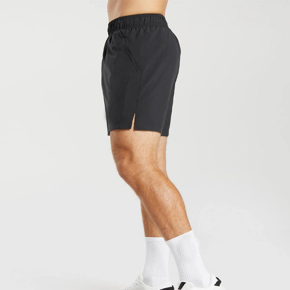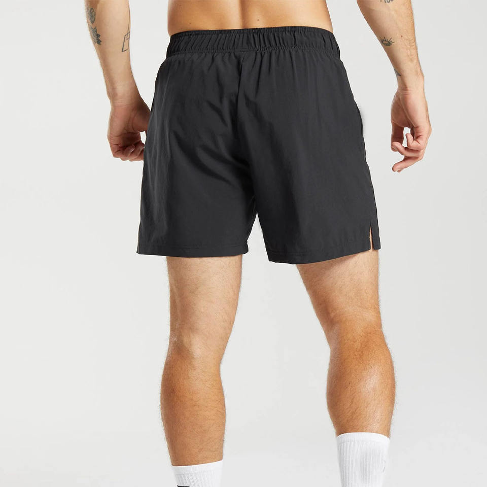 กางเกงขาสั้นสีดำกันน้ำสำหรับผู้ชายกางเกงออกกำลังกายเอวยางยืดพิมพ์ลายเรียบ
