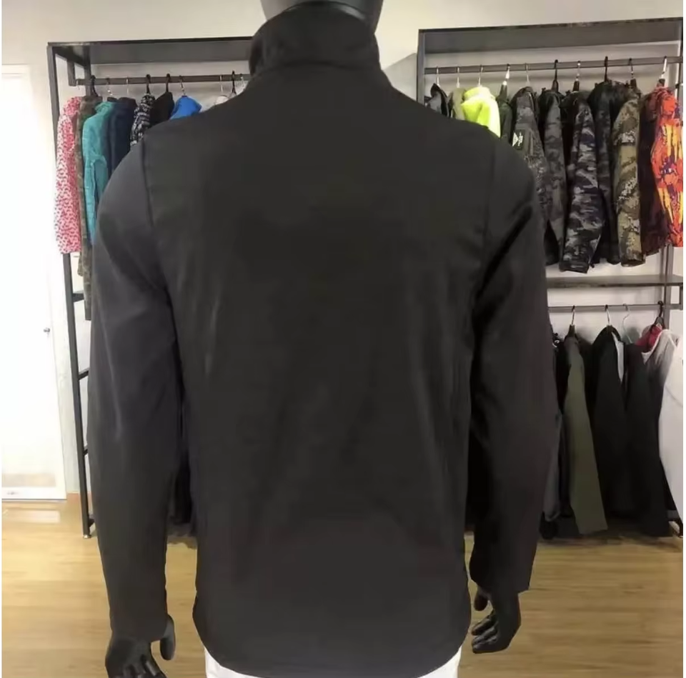 เสื้อแจ็คเก็ตกันลมกันน้ำสีดำสำหรับผู้ชายผ้าสะท้อนแสงโลโก้ตามสั่ง