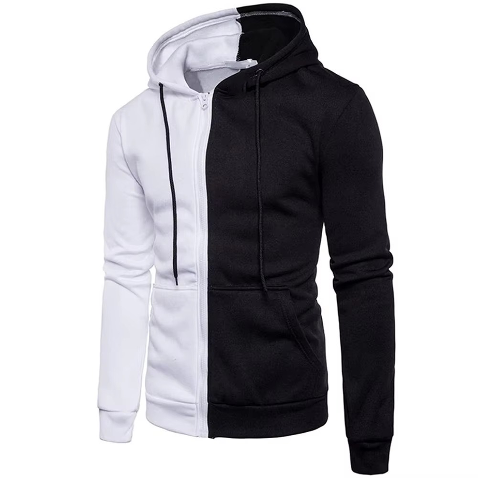 เสื้อฮู้ดผ้าฟลีซซิปรูดสีขาวและสีดำสำหรับผู้ชายมีสไตล์สำหรับกิจกรรมกลางแจ้งที่ดูสบายๆและสปอร์ตเป็นมิตรกับสิ่งแวดล้อม