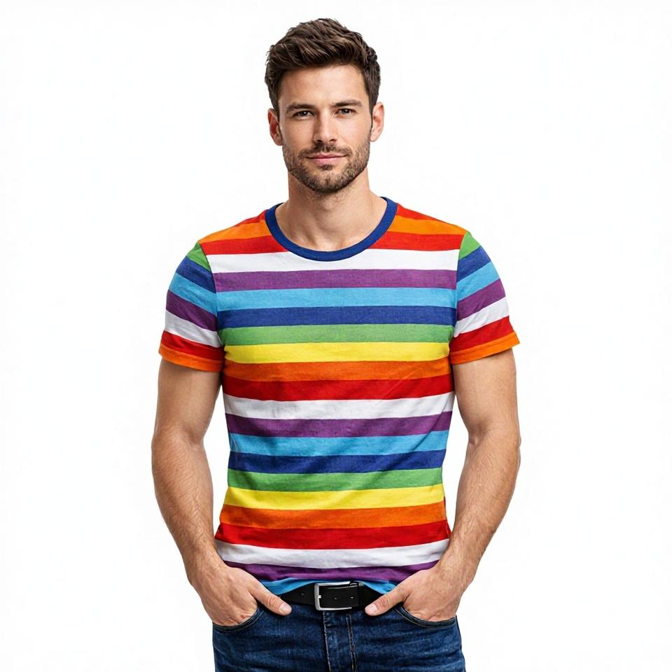 เสื้อยืดคอกลมลายทางสีน้ำเงินเทาสำหรับผู้ชายไซส์ใหญ่ | เสื้อยืดแขนสั้นลำลองทรงโอเวอร์ไซส์ ปรับแต่งได้สำหรับใส่ทุกวัน