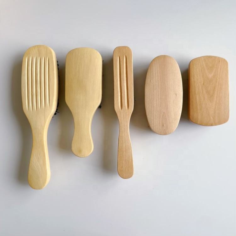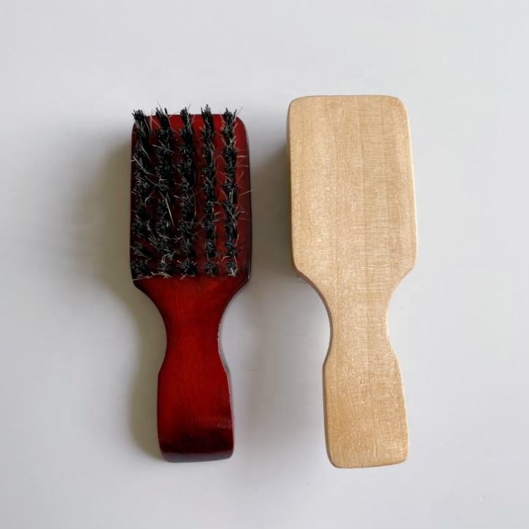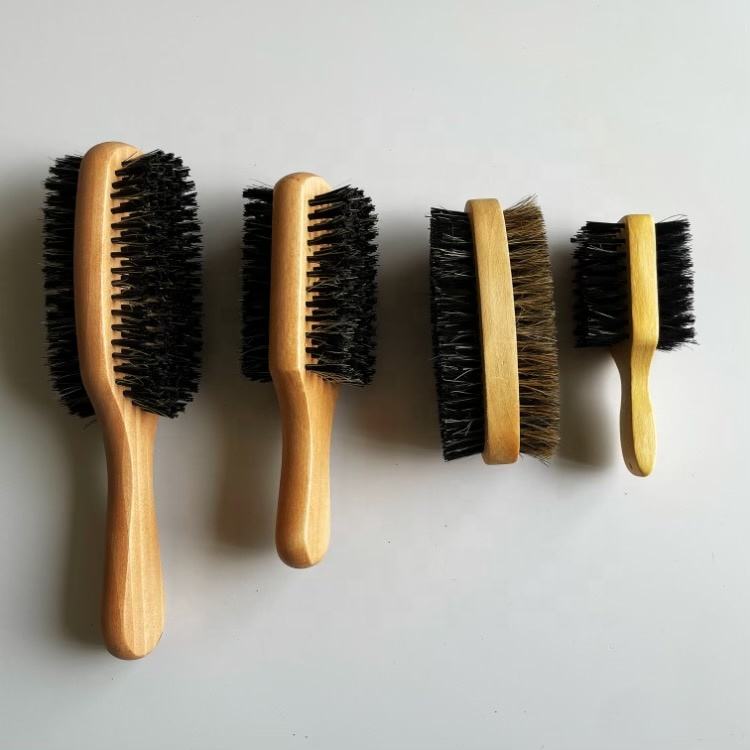 แปรงขนหมูป่าสำหรับผู้ชายด้ามไม้จริงสีธรรมชาติผมลอนหยิกหนาสั้นขนาดแตกต่างกันความแข็ง