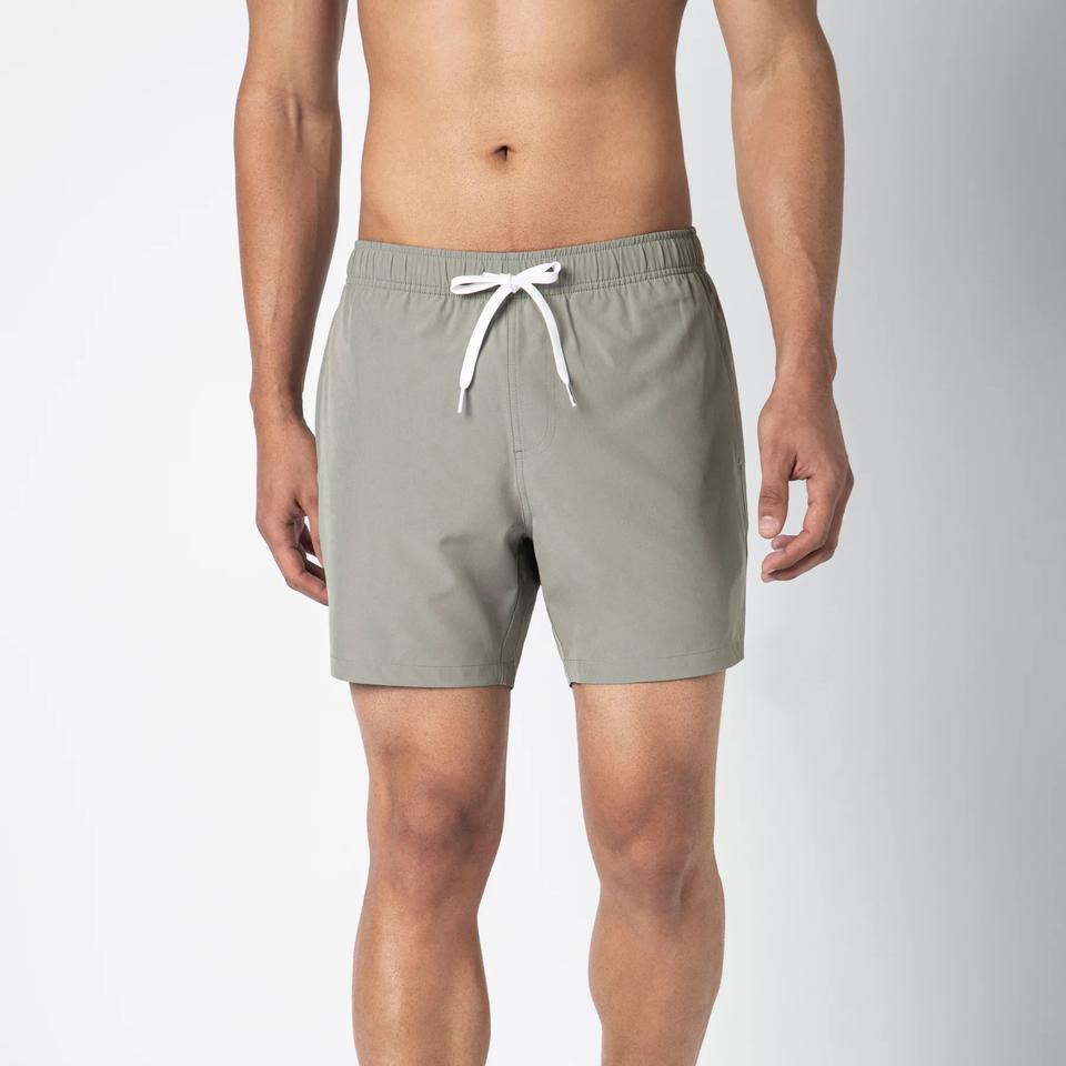 กางเกงขาสั้นเล่นกระดานโต้คลื่นบนผ้าใบแบบคลาสสิกสำหรับผู้ชายกางเกงขาสั้นผ้าสแปนเด็กซ์กันยับเอวกลางชุดชายหาดสวมใส่สบาย