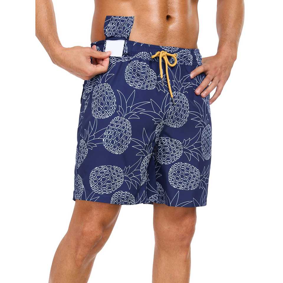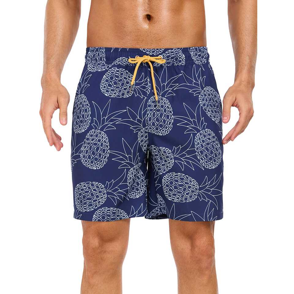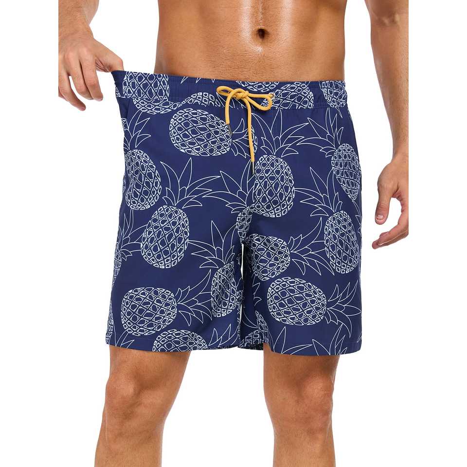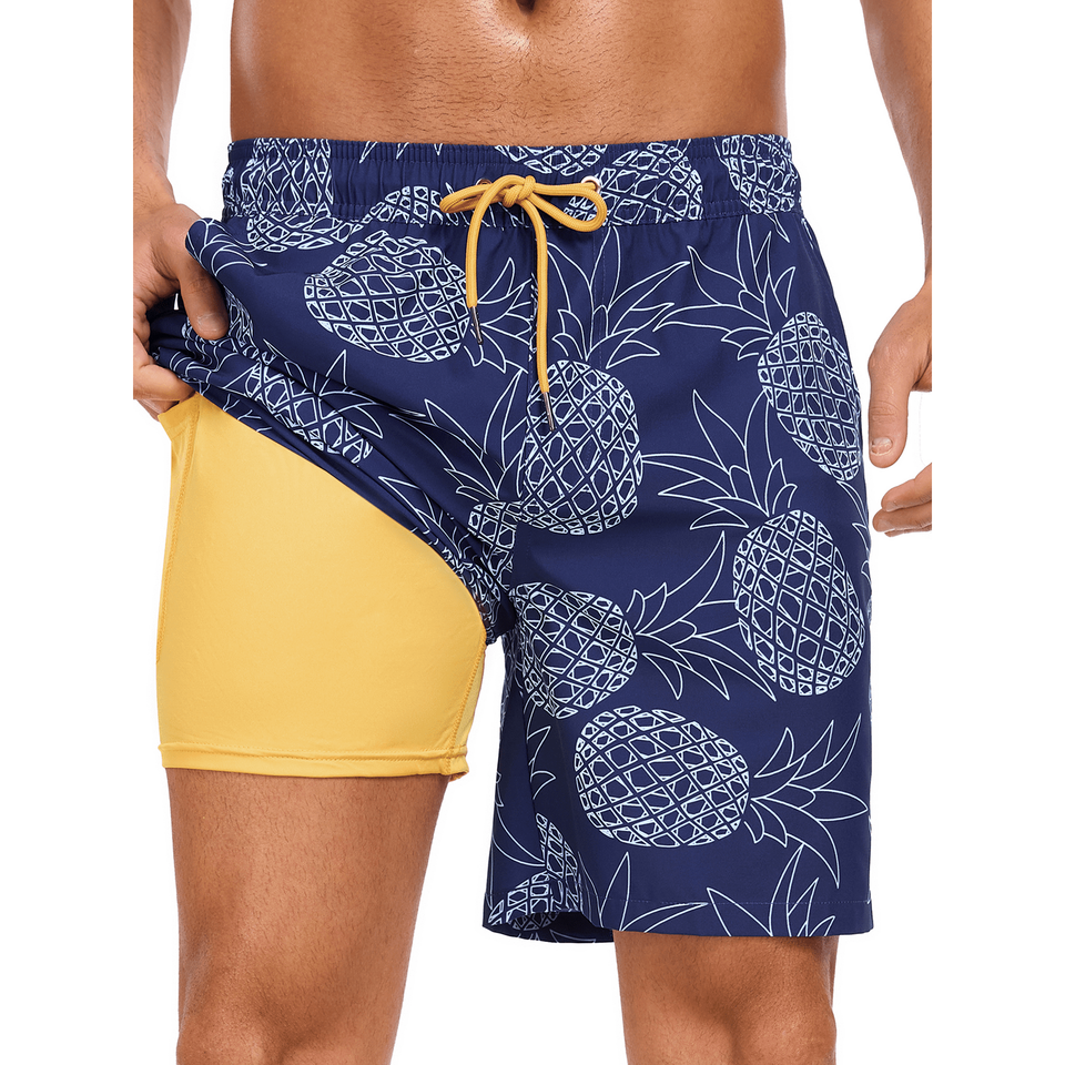 กางเกงว่ายน้ำสำหรับผู้ชายแห้งเร็วน้ำหนักเบาพิมพ์ลาย2 in 1สำหรับเล่นเซิร์ฟชุดว่ายน้ำกางเกงขาสั้นสำหรับผู้ชาย