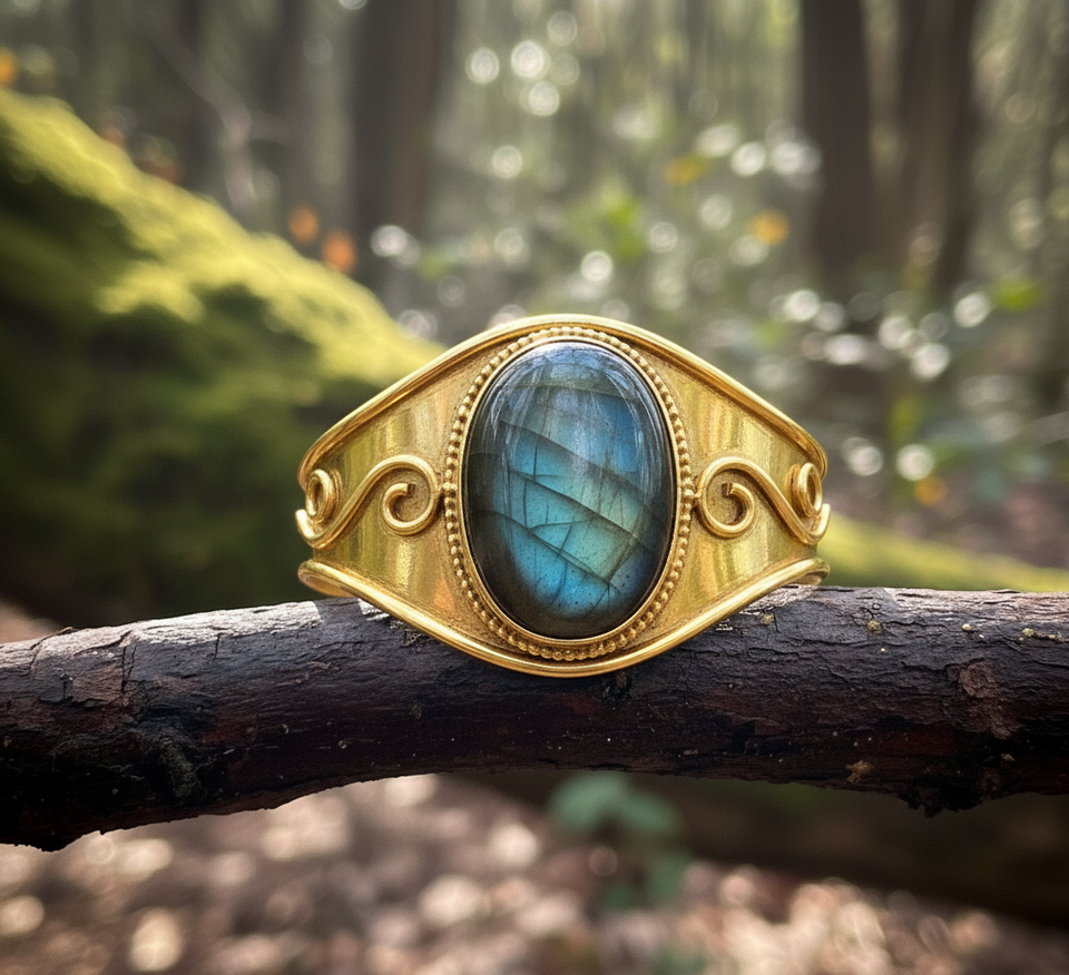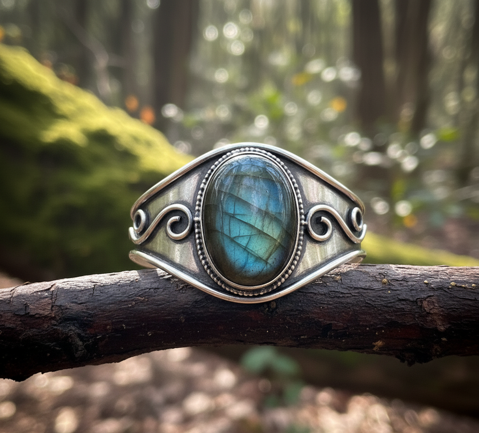 925ทอง14K สไตล์โบฮีเมียนของผู้ชายสร้อยข้อมือลูกปัดเงินแท้ทำด้วยมือหินลาบราดอร์ธรรมชาติ