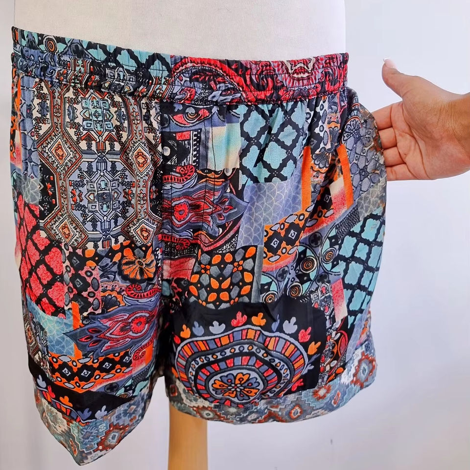 กางเกงขาสั้นกิโมโนโบโฮของผู้ชายชุดบ็อกเซอร์ผ้าฝ้าย100% เอวสูงยืดหยุ่นปิดลำลองออกแบบระบายอากาศได้ดีชายหาดใช้ในบ้าน