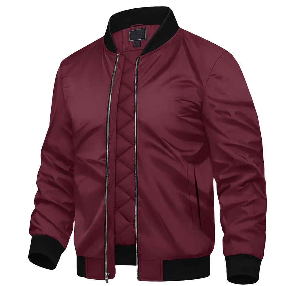 แจ็คเก็ตบอมเบอร์ผู้ชาย, เสื้อโค้ทบุนวมน้ำหนักเบามีกระเป๋าด้านหน้ากันน้ำสวมใส่กลางแจ้ง