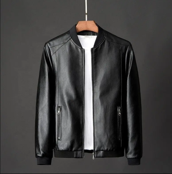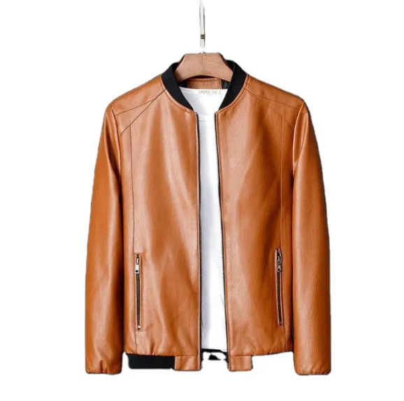 แจ็คเก็ตหนังผู้ชายสไตล์บอมเบอร์แจ็คเก็ตธุรกิจสุภาพบุรุษคอตั้งมีซิปขนาดพิเศษเสื้อแจ็คเก็ตตัวยาวลำลองสภาพใหม่