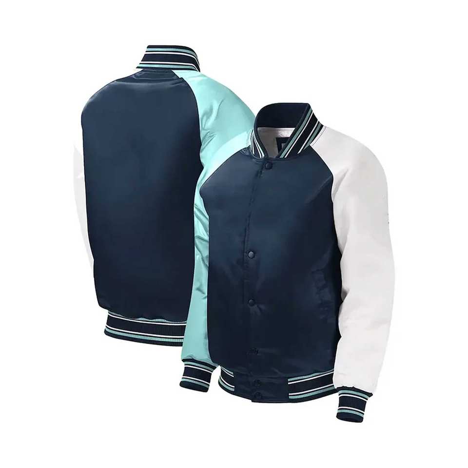 เสื้อแจ็คเก็ตผ้าซาตินแบบสั่งทำพิเศษ | เสื้อโค้ชปักโลโก้แบบวาร์ซิตี้ | แฟชั่นสตรีทแวร์ | โรงงาน OEM