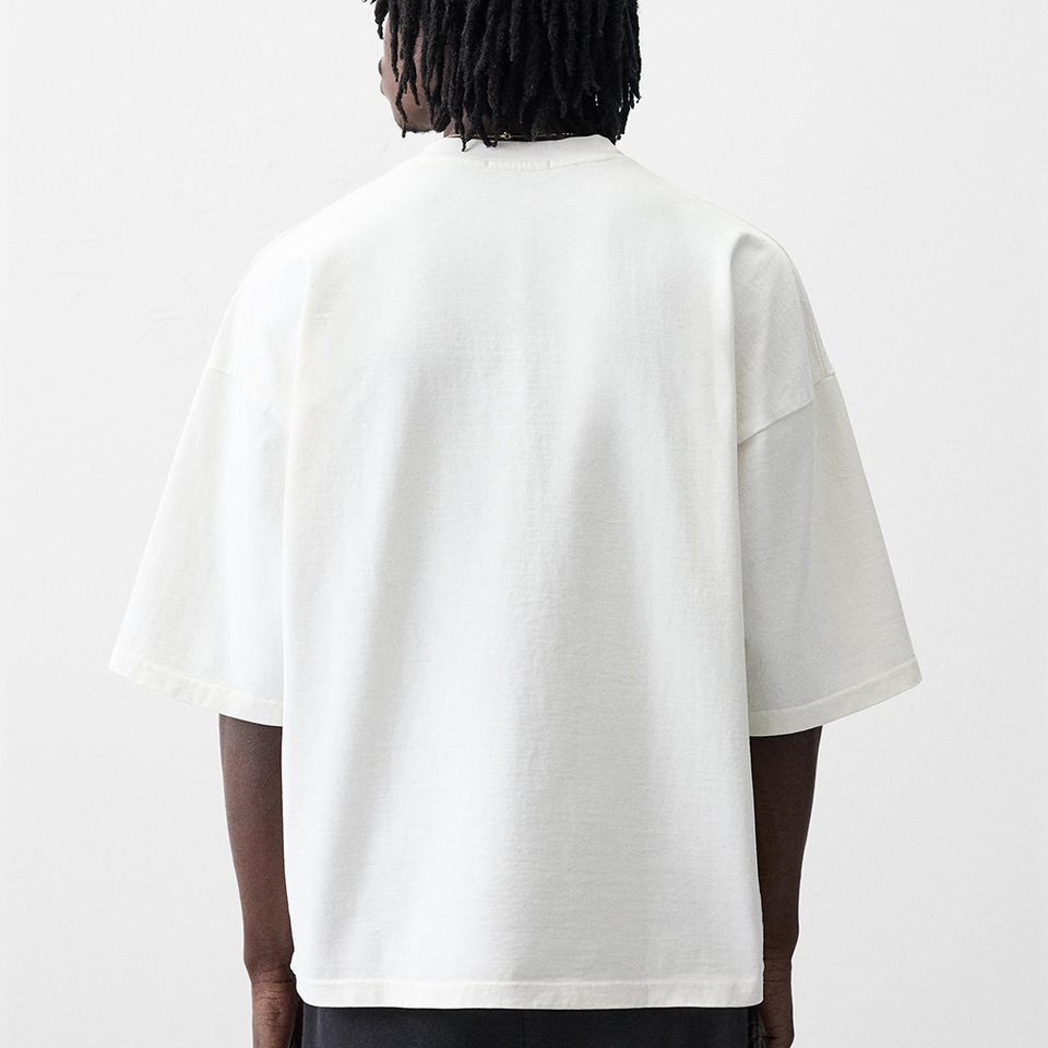 เสื้อยืดรัดรูปทรงหลวมสำหรับผู้ชายเสื้อยืดโอเวอร์ไซส์ดีไซน์สีพื้นพิมพ์ลายดิจิตอลสีขาวล้วนทรงหลวมและผ้าถักโอเวอร์ไซส์