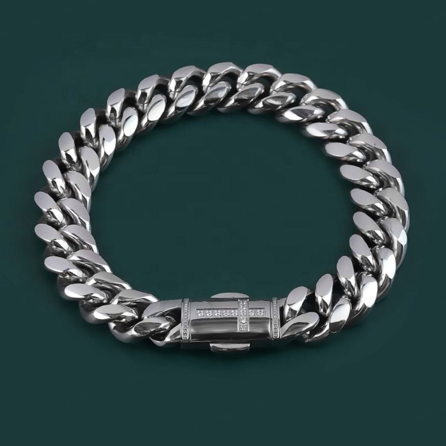 สร้อยข้อมือผู้ชาย เงิน สแตนเลส สไตล์คิวบัน ลิงค์เชน สำหรับผู้ชาย ผู้หญิง ขายส่ง เครื่องประดับ ของขวัญ