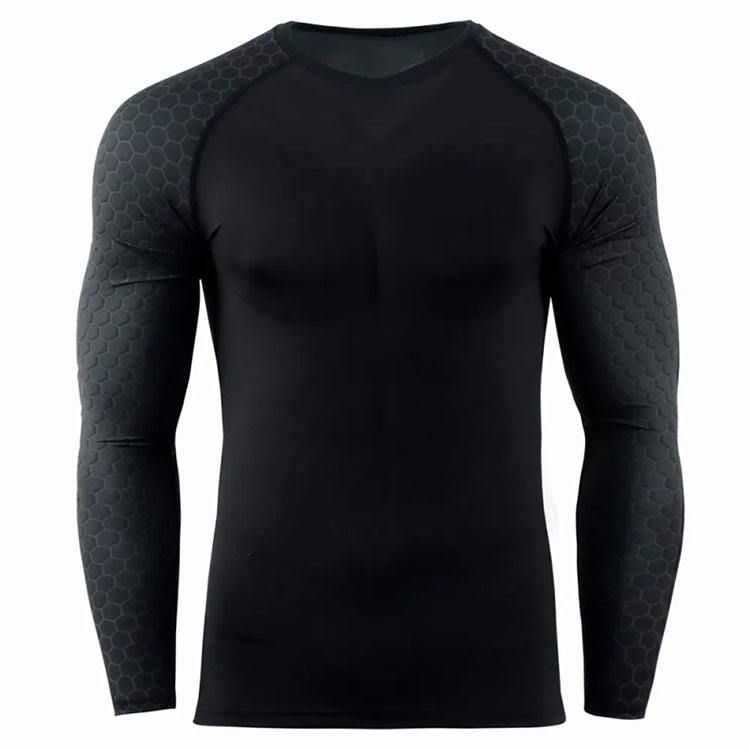 เสื้อผ้ากีฬาแขนยาวผ้าสแปนเด็กซ์แห้งเร็วเสื้อรัดรูประบายอากาศได้ดีสำหรับผู้ชาย