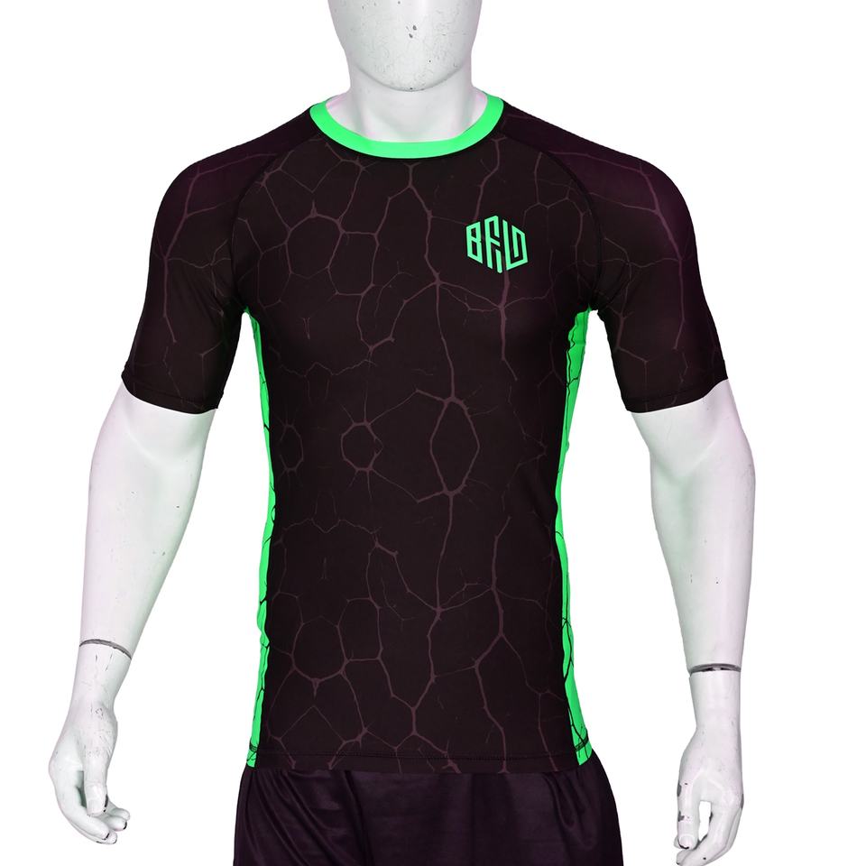 ชุดออกกำลังกายแขนสั้นพิมพ์ซับลิเมชันชุดออกกำลังกายแขนสั้นพิมพ์ลาย Jitsu rashguard ระบายอากาศของผู้ชาย
