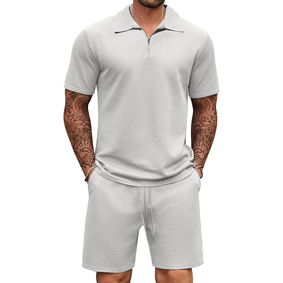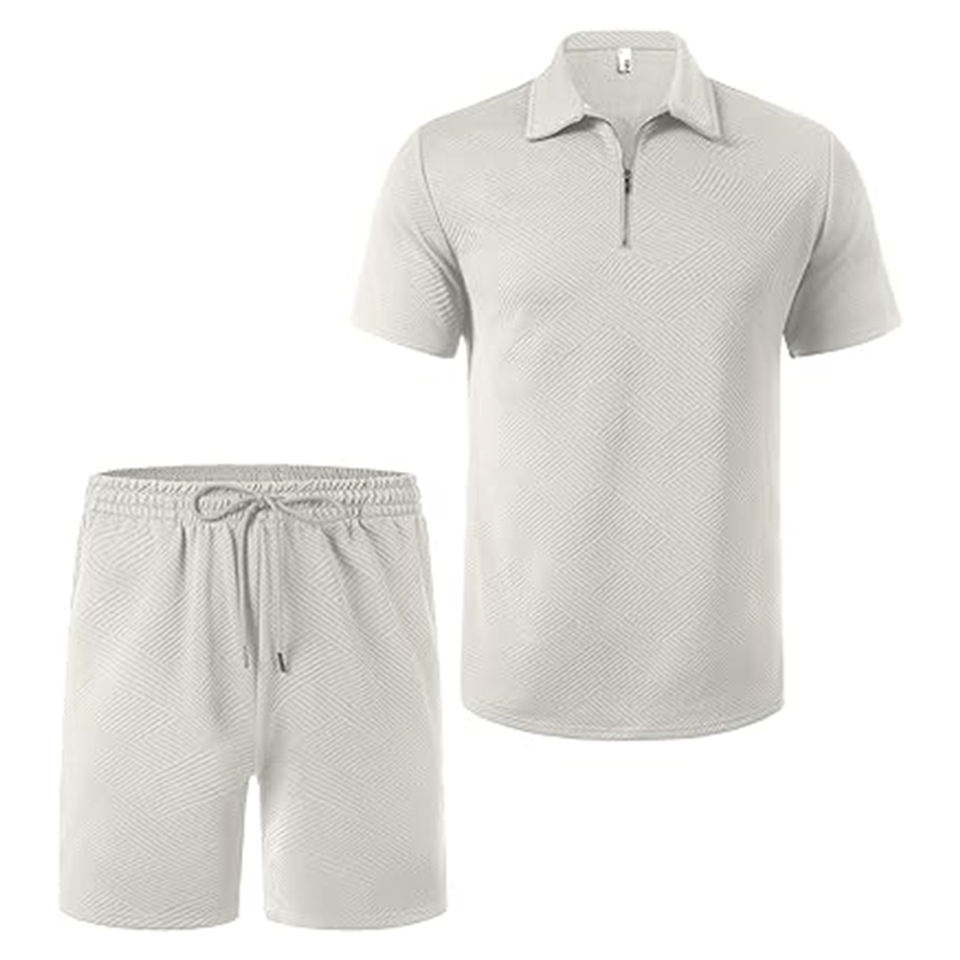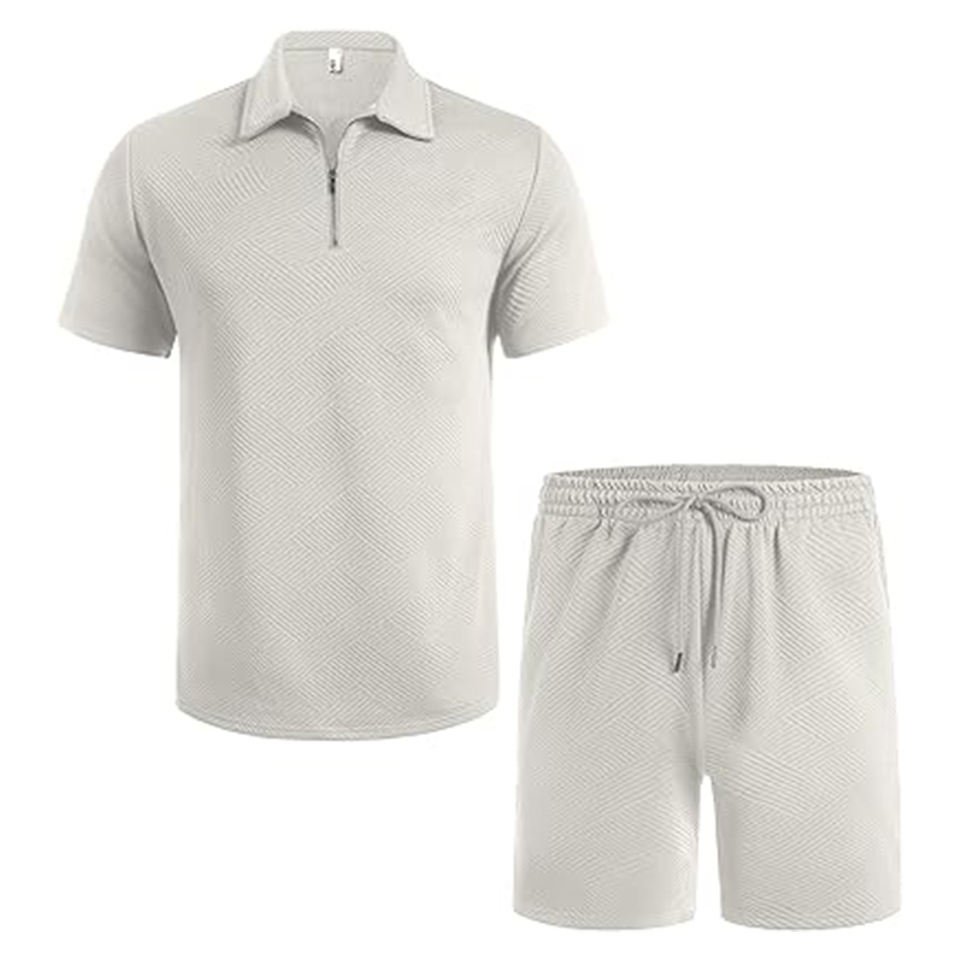 ชุดกีฬาวิ่งออกกำลังกายชาย2ชิ้นเสื้อโปโลมีซิปสำหรับผู้ชายชุดวอร์ม