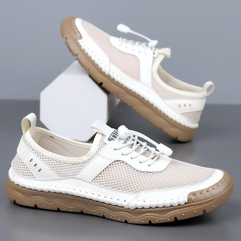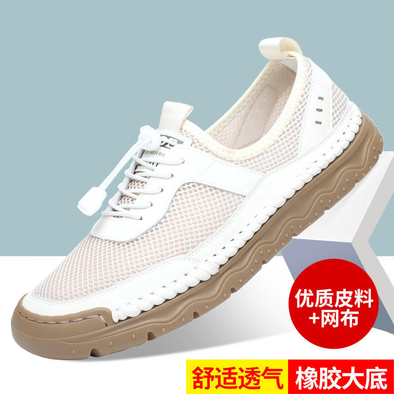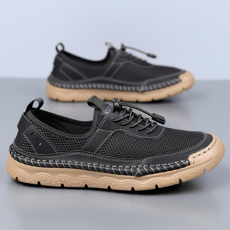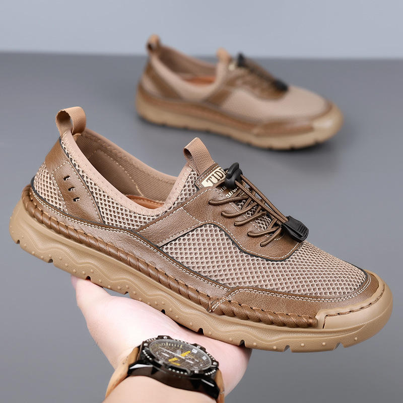 รองเท้ากีฬาผู้ชายแบบตาข่ายระบายอากาศได้ดี สายรัดยางยืด แฟชั่นฤดูร้อนสำหรับกิจกรรมกลางแจ้ง สีน้ำตาล ไซส์ 42