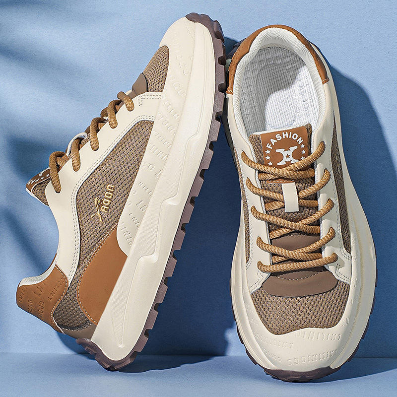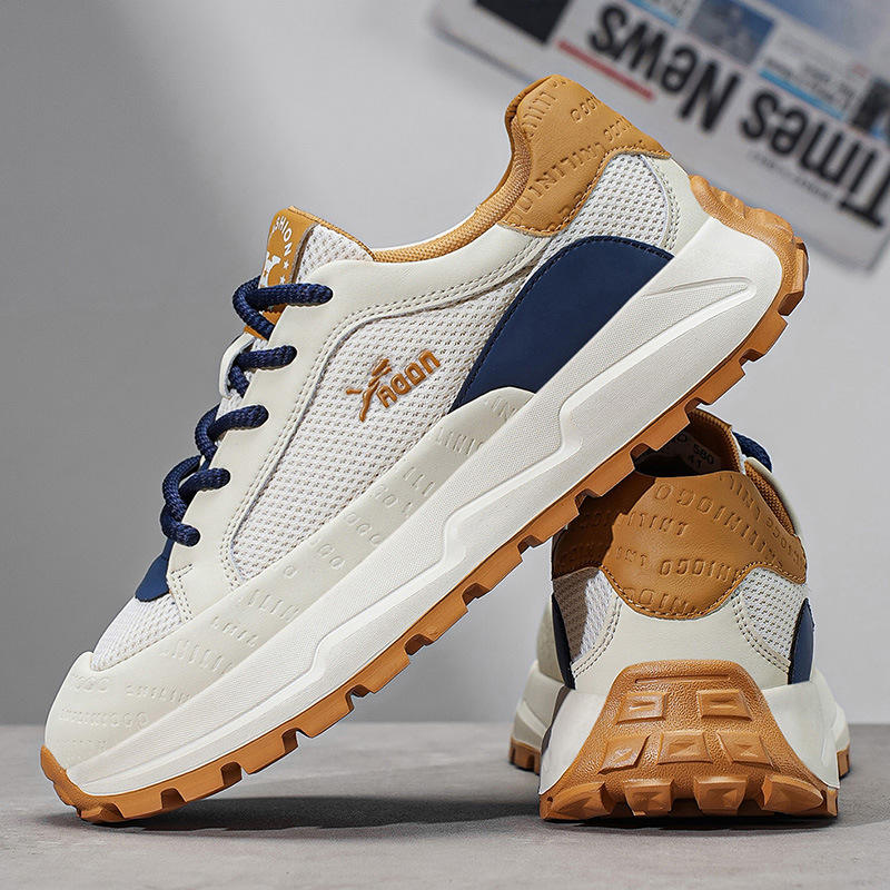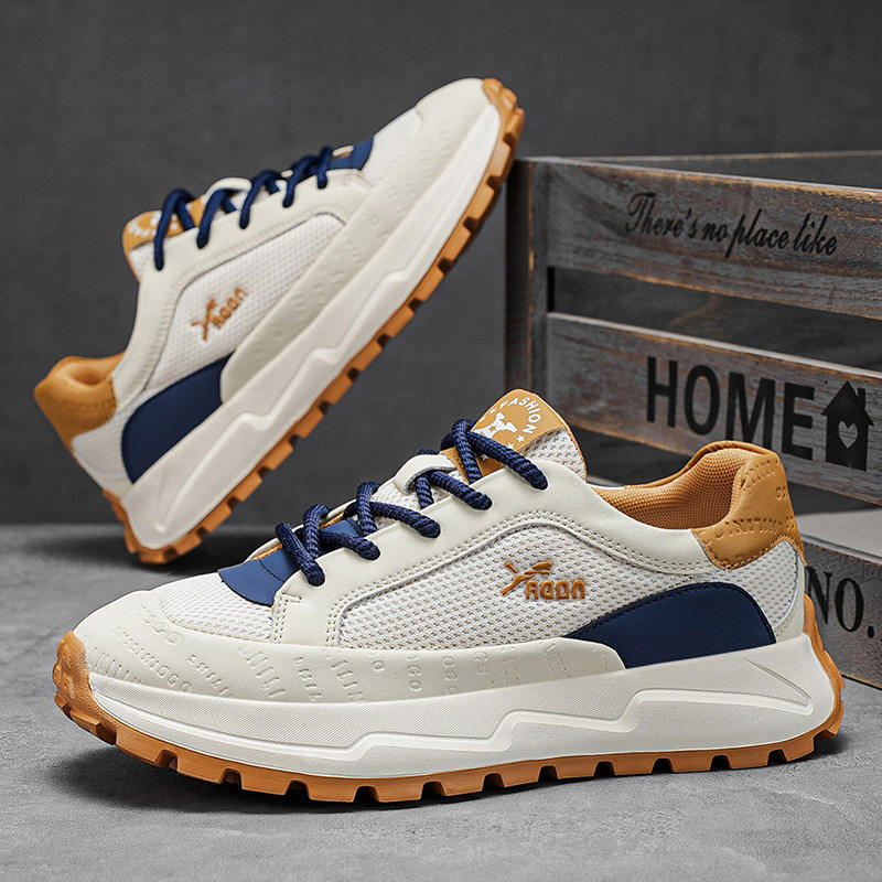 รองเท้าเดินผู้ชายแบบสวม ระบายอากาศได้ดี น้ำหนักเบา พื้นรองเท้ากันลื่น ยางกันลื่น ปักโลโก้ เพิ่มความสูง