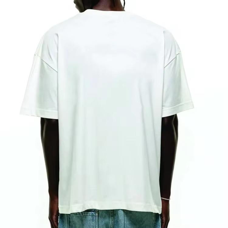 เสื้อยืดคอกลมทรงบ็อกซี่ผู้ชาย ระบายอากาศได้ดี ผ้าฝ้าย 100% สวมใส่สบาย พร้อมลายตัวอักษรแบบกำหนดเองและผ้าเนื้อละเอียด