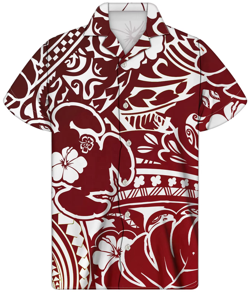เสื้อเชิ้ตผู้ชายผ้าป๊อปลินระบายอากาศดี ดีไซน์ ODM แฟชั่นฤดูร้อน ลายชนเผ่าซามัว แขนสั้น สไตล์ลำลอง