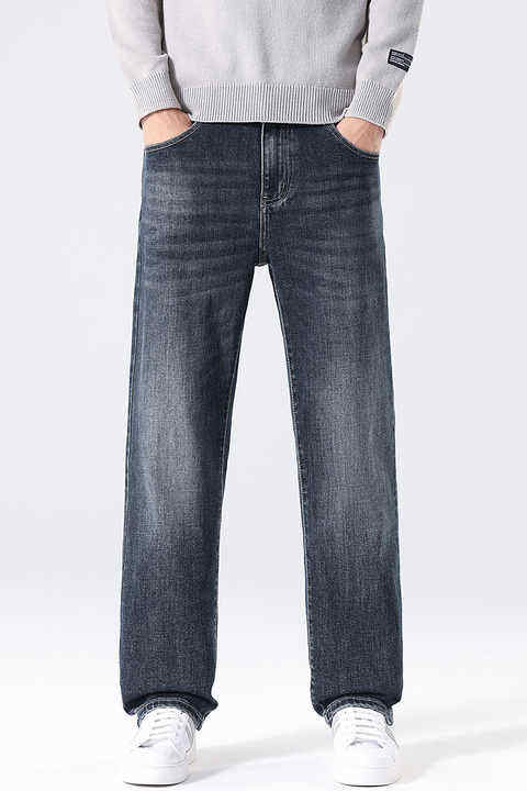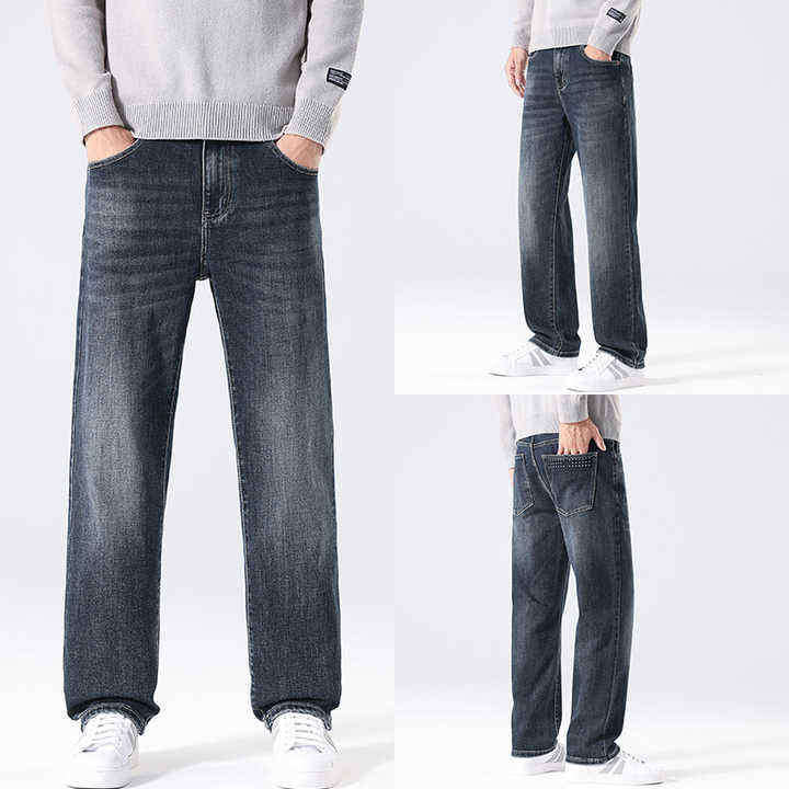 กางเกงยีนส์ขาตรงระบายอากาศได้ดีของผู้ชาย-น้ำหนักเบาและมีความยืดหยุ่นออกแบบมาเพื่อความสบายตลอดทั้งวันและพอดีแบบคลาสสิก