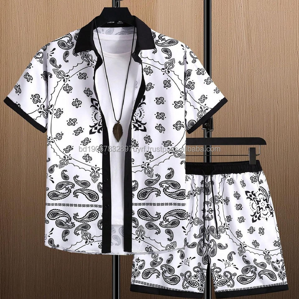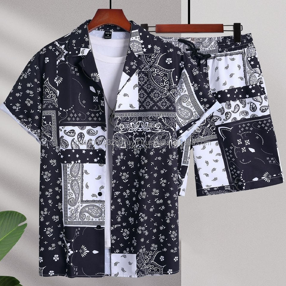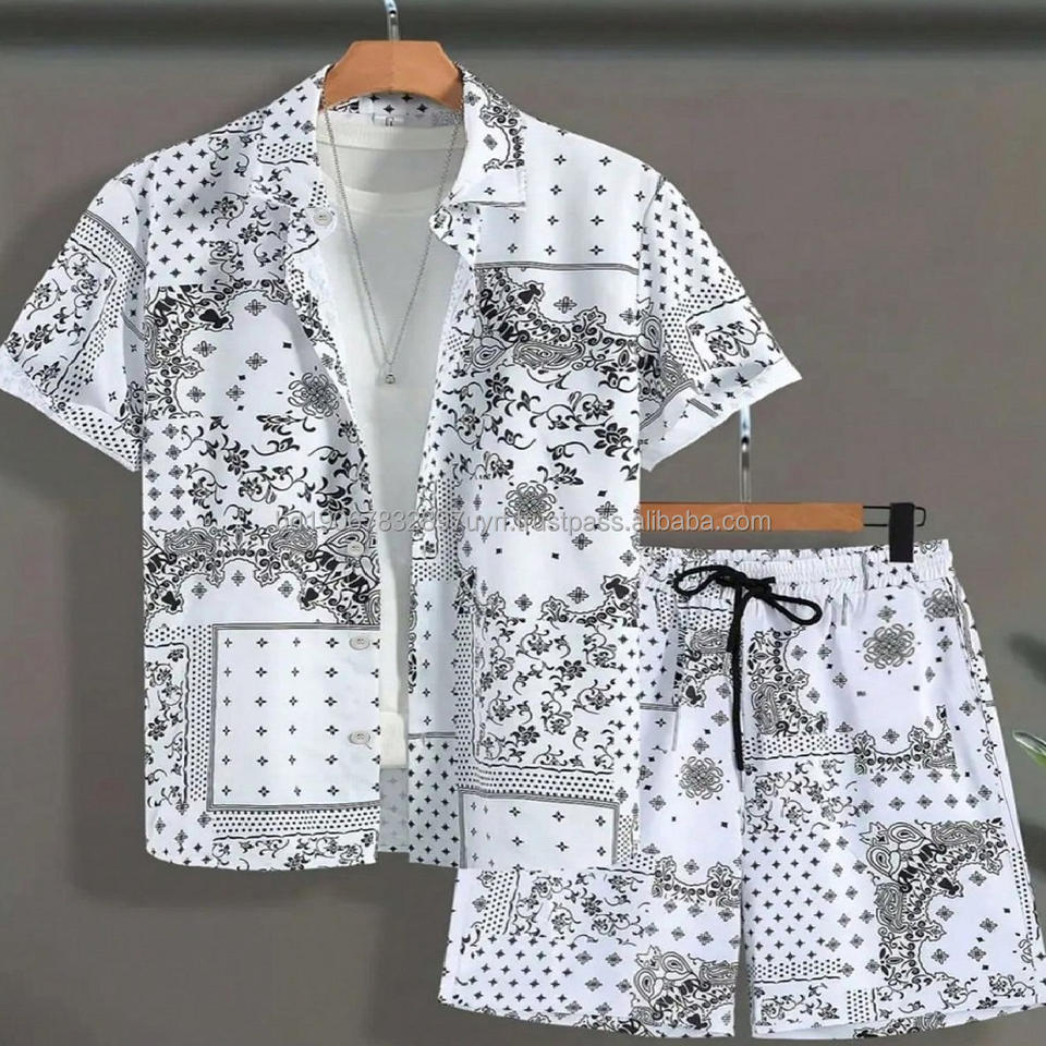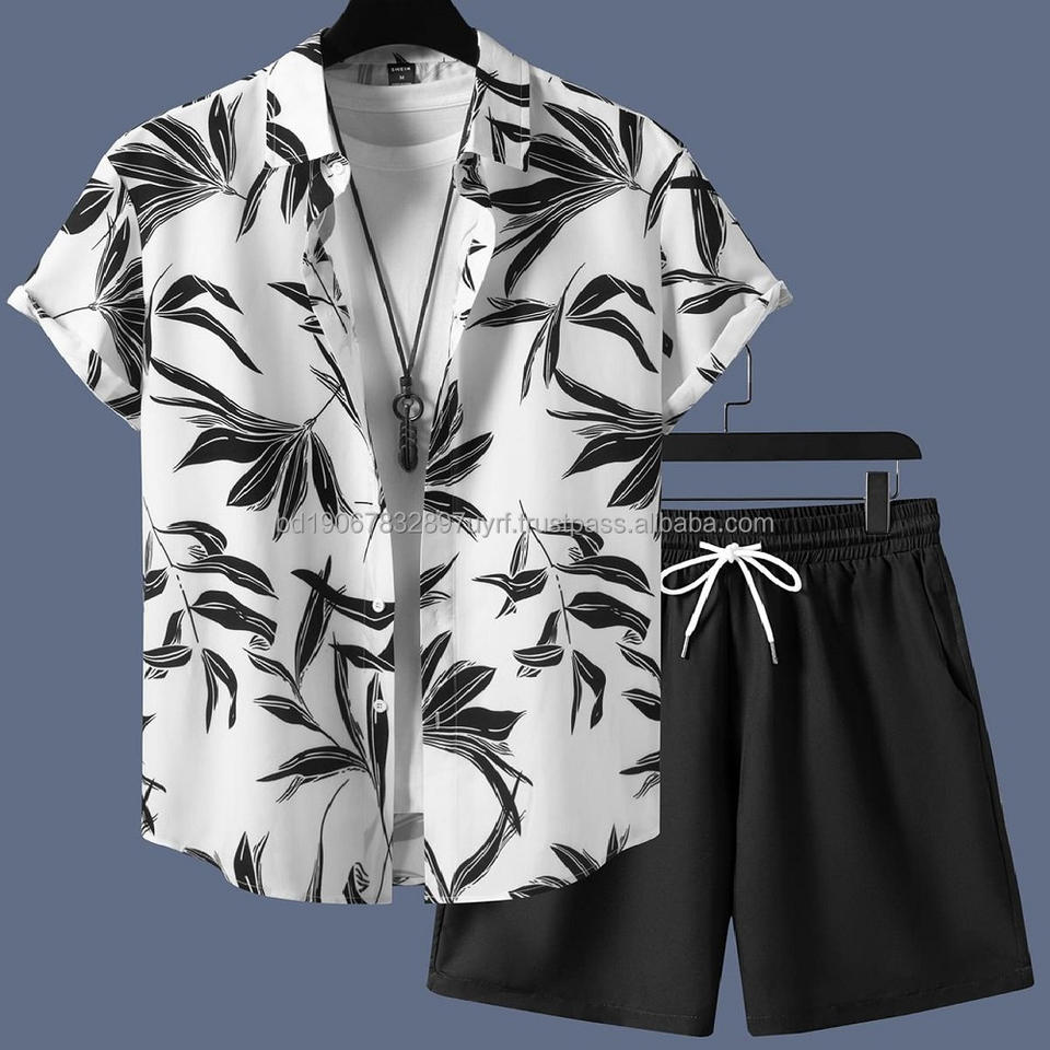 ชุดเสื้อเชิ้ตและกางเกงขาสั้นลายดอกไม้พิมพ์ลายสกรีนผ้าซาตินโพลีเอสเตอร์/คอตตอนระบายอากาศสำหรับผู้ชาย เสื้อเชิ้ตชายหาดสไตล์ฮาวายสำหรับฤดูร้อน