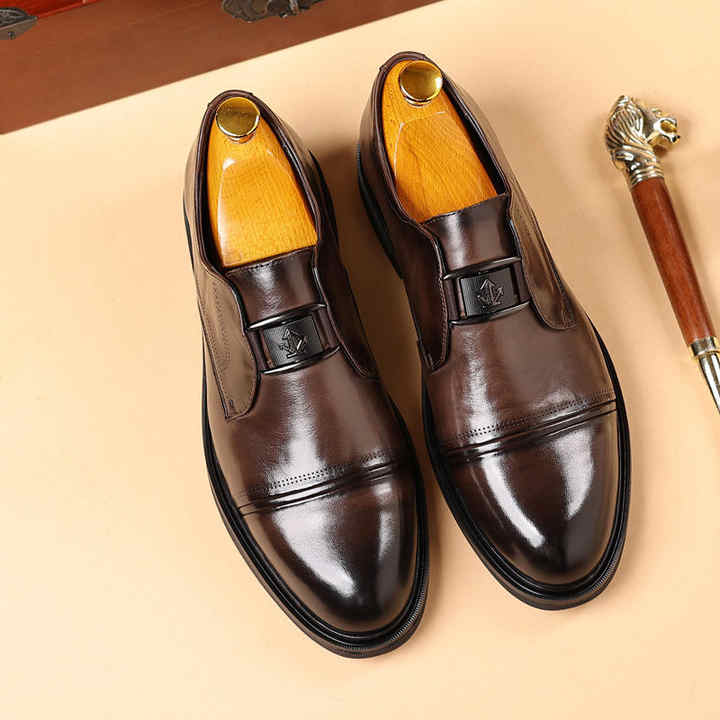 Men's British Business Shoes - Genuine Leather Lightweight Formal Footwear with Cowhide Toe