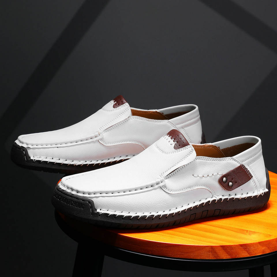 รองเท้าอ็อกซ์ฟอร์ดสไตล์อังกฤษสำหรับผู้ชาย หนังแท้ ตาข่าย ผูกเชือก กันลื่น ระบายอากาศ น้ำหนักเบา หัวกลม ผิวมัน