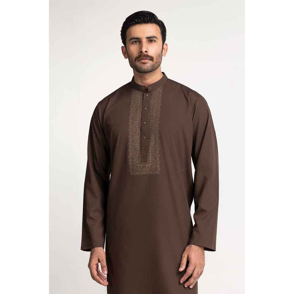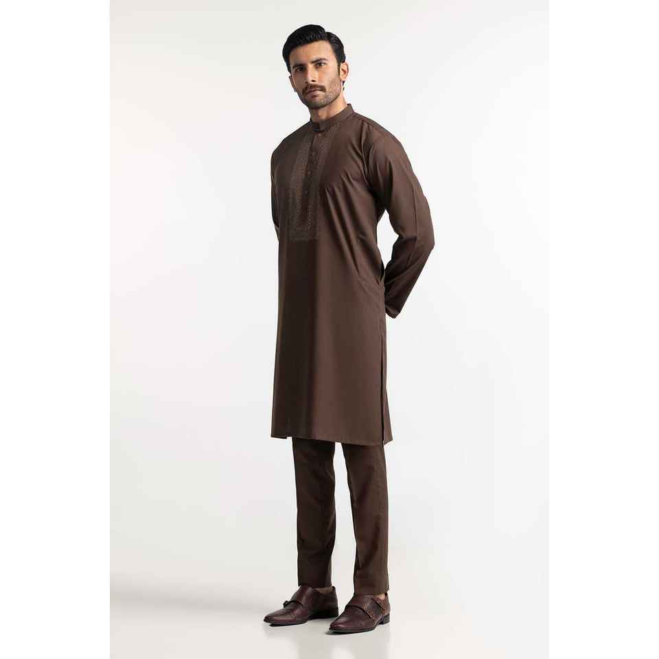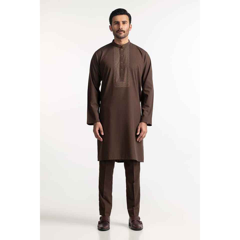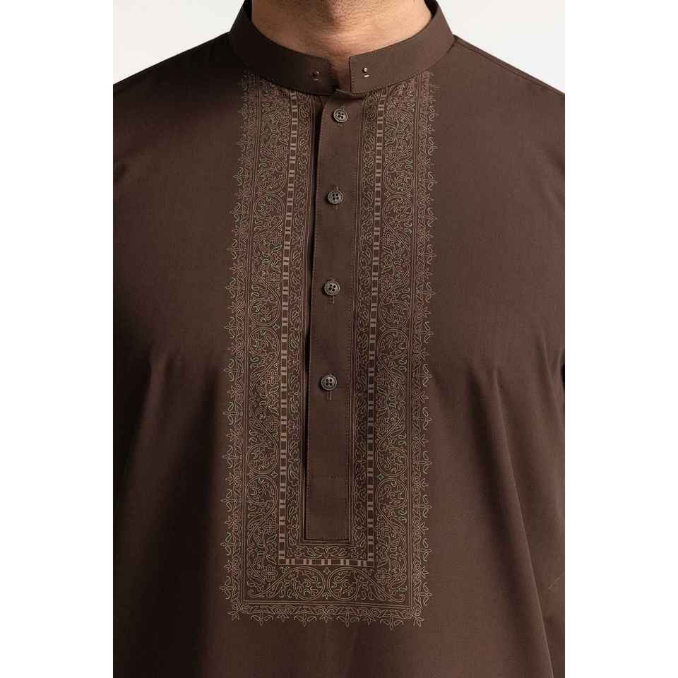 ชุดสูทผู้ชายสีน้ำตาลสไตล์คลาสสิก กระดุมแถวเดียว สำหรับธุรกิจและงานแต่งงาน ปิดด้วยกระดุม ความยาวแบบยาว ลายพิมพ์-SK-S24-070