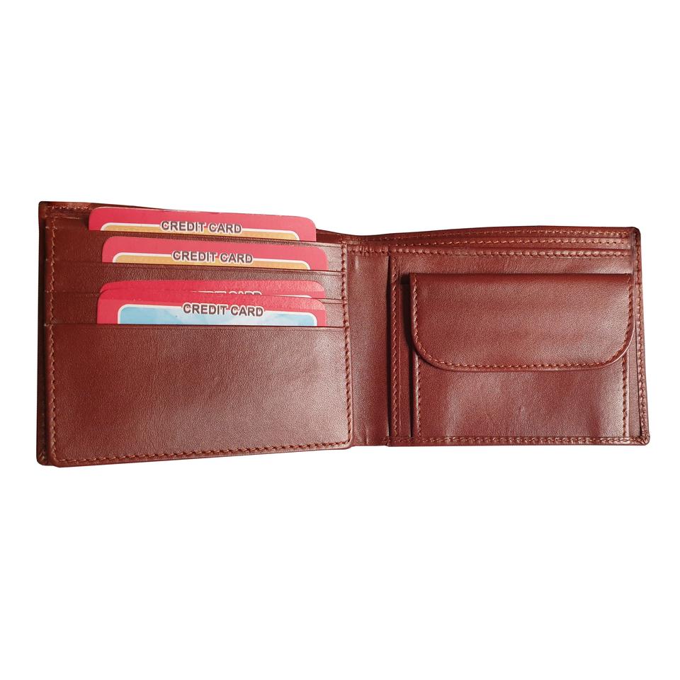 กระเป๋าสตางค์แบบพับสองพับหนังสีน้ำตาลสำหรับผู้ชายมีช่องใส่บัตรประจำตัวแบบพับได้มีช่องเปิดปิดแบบยาวสั้น