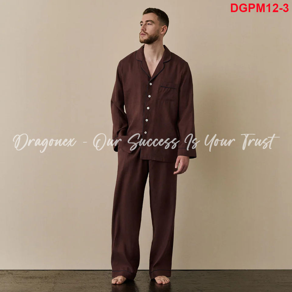 Men's Brown Linen Pajama Trouser Set Night 2024 100% Linen Woven From European Flax Classic House Fashion for Hot Days Luxury