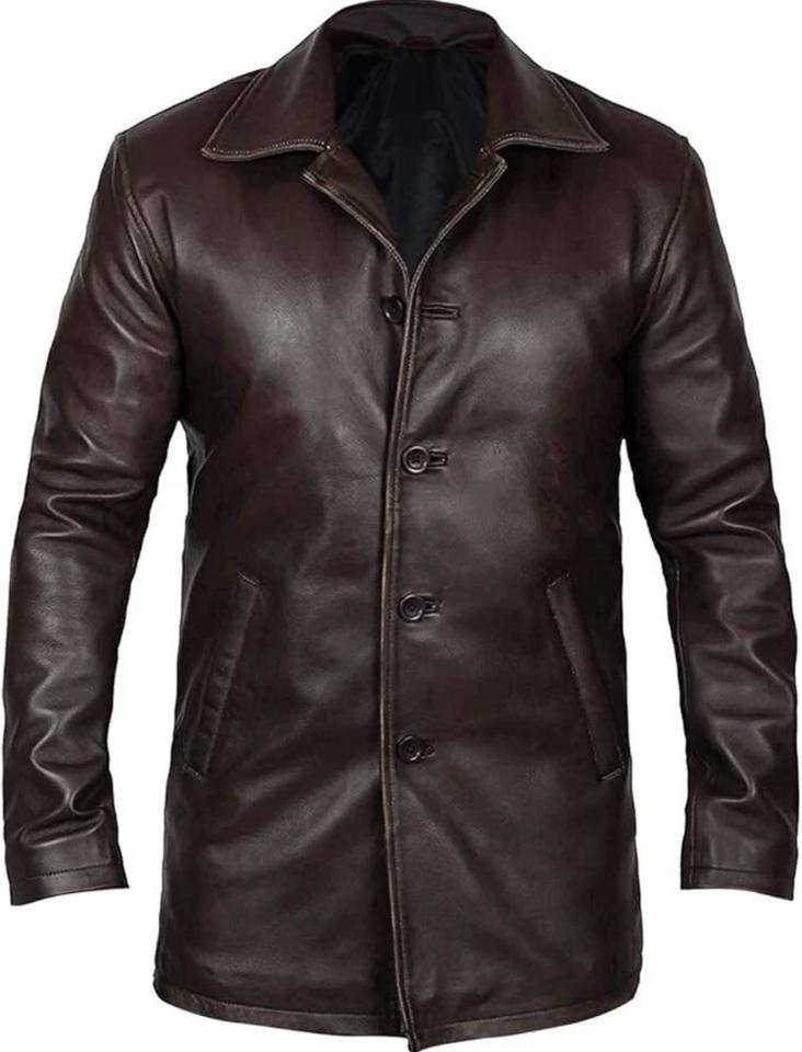 เสื้อแจ็คเก็ตหนังแกะแท้สีน้ำตาลสำหรับผู้ชาย แบบติดกระดุม 3QTR พร้อมซิป ขนาดใหญ่ ระบายอากาศได้ดี เหมาะสำหรับฤดูใบไม้ผลิ กันน้ำ กันลม