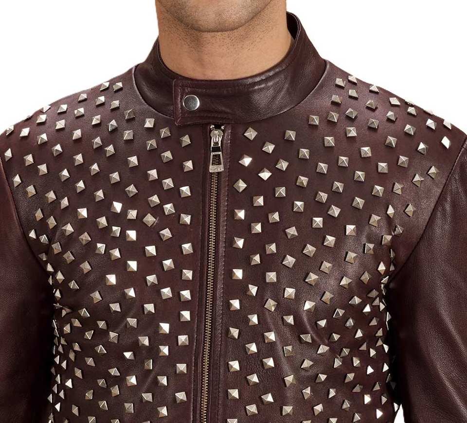 เสื้อแจ็กเก็ตหนังประดับหมุด