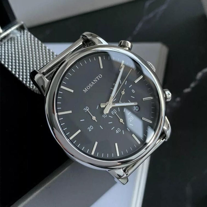 นาฬิกาสายเหล็กลำลองสำหรับธุรกิจของผู้ชายสายเหล็กกันน้ำปฏิทินนาฬิกาควอตซ์ AR1648