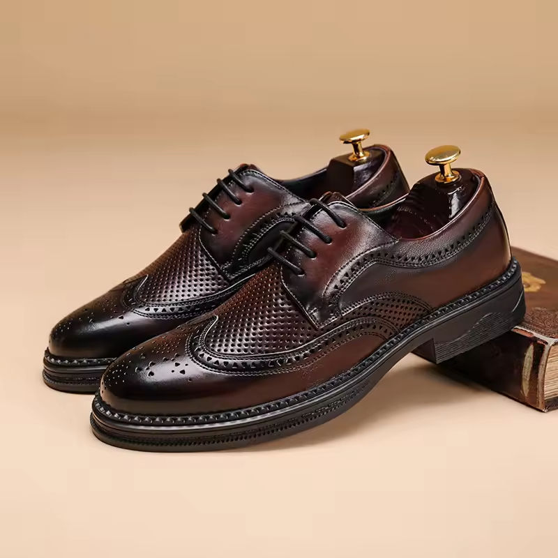 รองเท้าอ็อกซ์ฟอร์ดหนังแท้แบบผูกเชือกสำหรับผู้ชาย สไตล์ทางการ รุ่นใหม่ปี 2025 พื้นหนาทรงเหลี่ยม เพิ่มความสูง กันลื่น