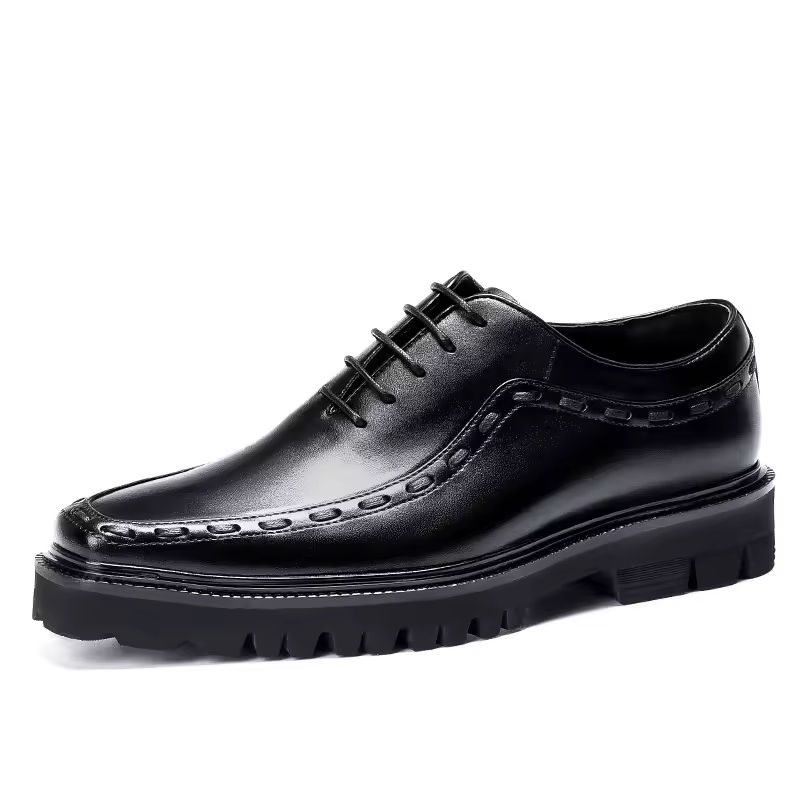 รองเท้าอ็อกซ์ฟอร์ดหนังแท้แบบผูกเชือกสำหรับผู้ชาย สไตล์ทางการ รุ่นใหม่ปี 2025 หัวเหลี่ยม พื้นหนา เพิ่มความสูง กันลื่น