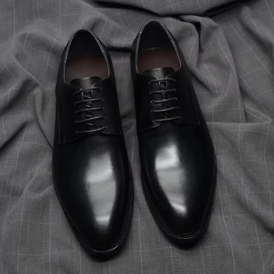 รองเท้าอ็อกซ์ฟอร์ดหนังแท้แบบผูกเชือกสำหรับผู้ชาย สไตล์ใหม่ปี 2025 พื้นหนา กันลื่น เพิ่มความสูง รุ่น Evergreen