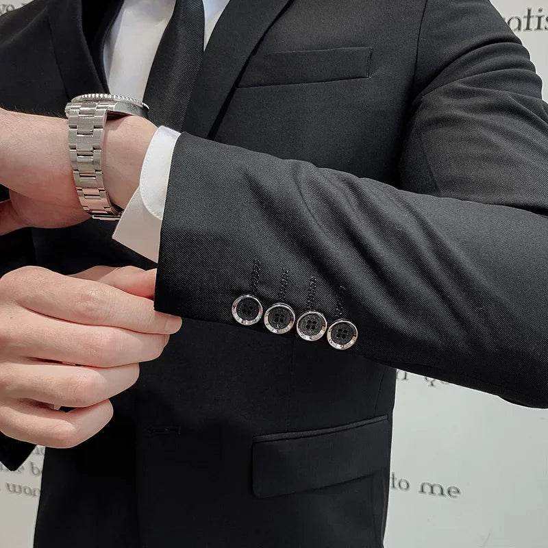 ชุดสูทเจ้าบ่าว/ธุรกิจทางการของผู้ชาย2ชิ้นเสื้อสูทกระดุมสองแถวไซส์ XL แฟชั่นใหม่