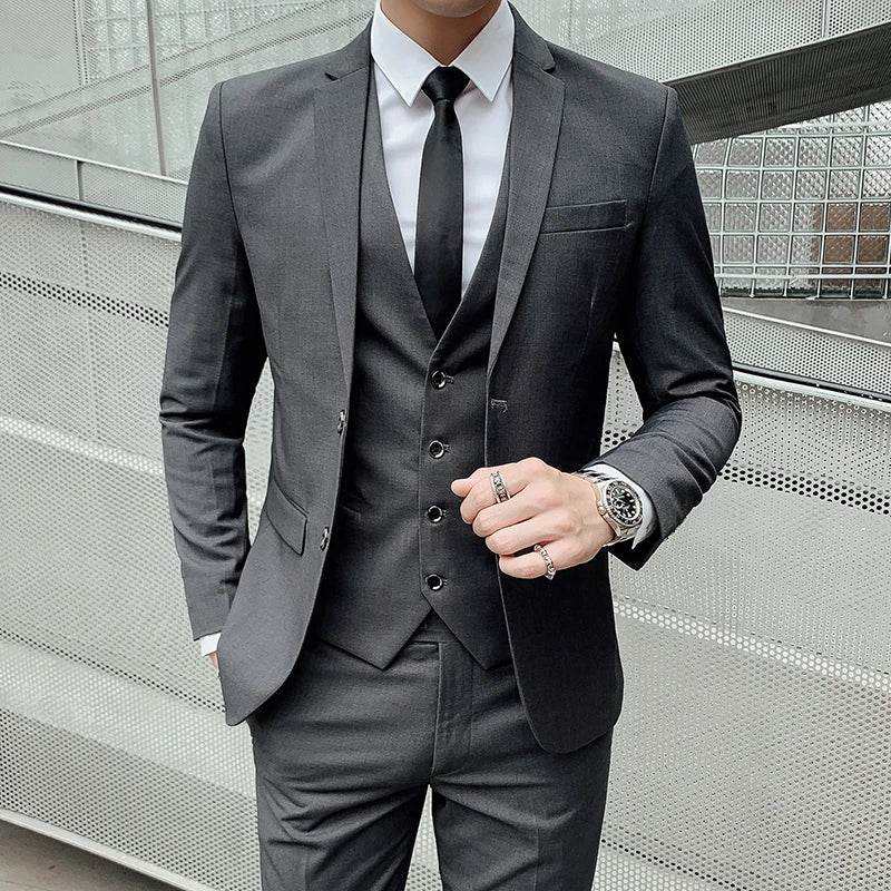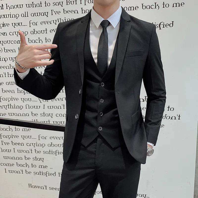 ชุดสูทธุรกิจของผู้ชายสีทึบชุดทักซิโด้สำหรับเจ้าบ่าวชุดทักซิโด้3ชิ้นพร้อมเสื้อกั๊กปกเสื้อกางเกงสำหรับงานแต่งงาน boutiqu