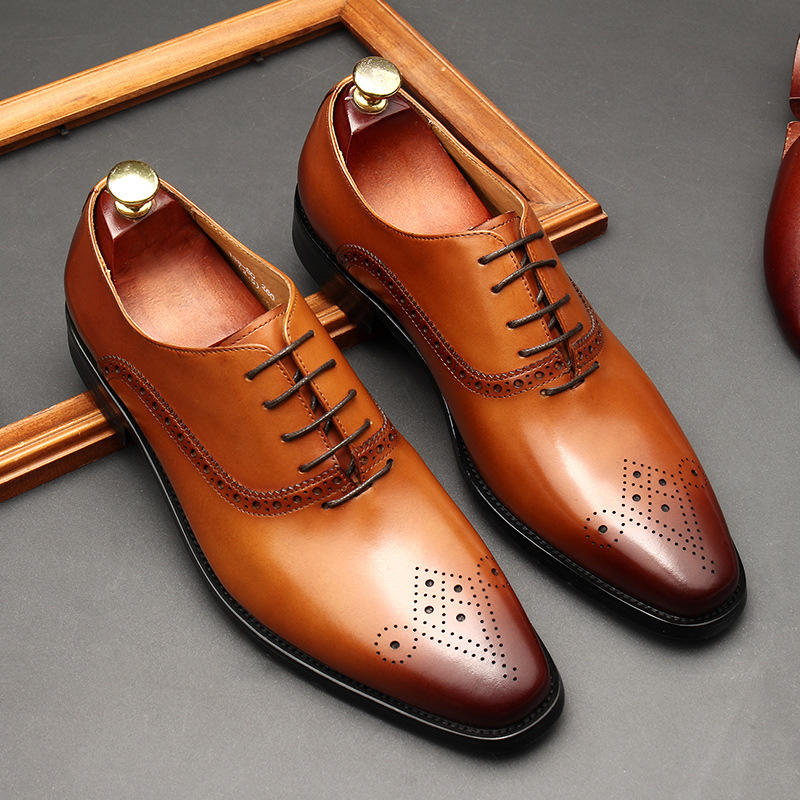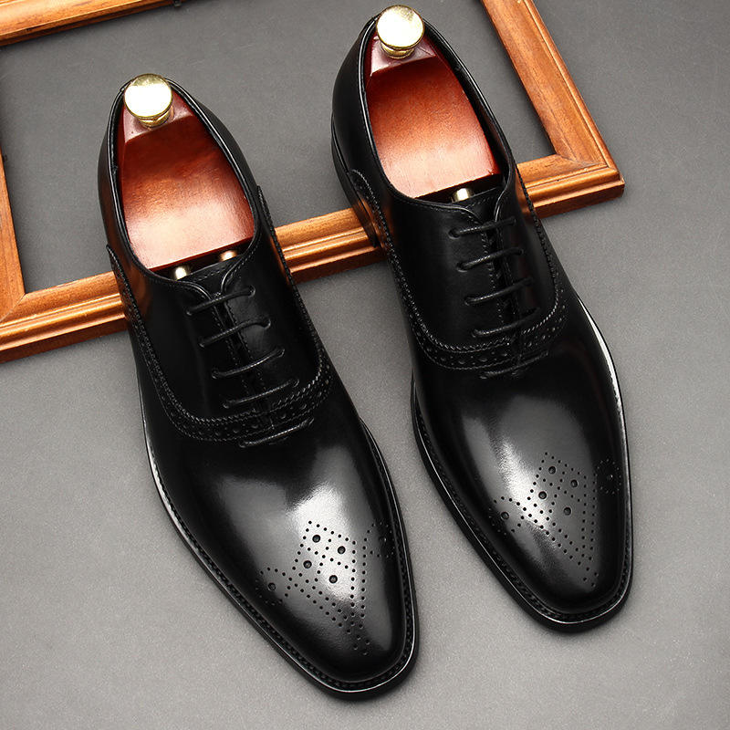 รองเท้าหนังแท้ทรงอ็อกซ์ฟอร์ดแบบผูกเชือก สไตล์เกาหลี สำหรับผู้ชาย หัวเหลี่ยม งานแฮนด์เมด ระบายอากาศได้ดี น้ำหนักเบา กันลื่น เหมาะสำหรับงานที่เป็นทางการ