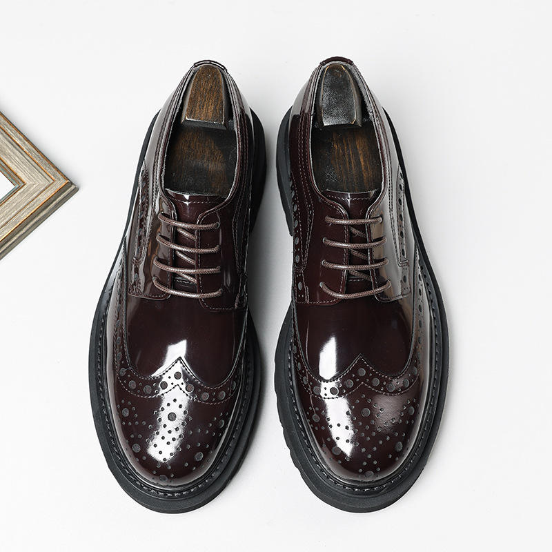 รองเท้าอ็อกซ์ฟอร์ดหนังแท้ทรงสี่เหลี่ยมสำหรับผู้ชาย สไตล์เกาหลี แบบผูกเชือก ทำมือ กันลื่น ระบายอากาศได้ดี น้ำหนักเบา