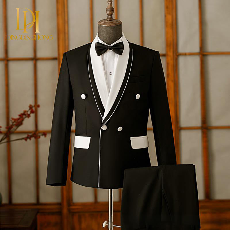 ชุดสูทธุรกิจสำหรับผู้ชายชุดสำหรับงานแต่งงานเจ้าบ่าวชุดออกงานปาร์ตี้มีซิป