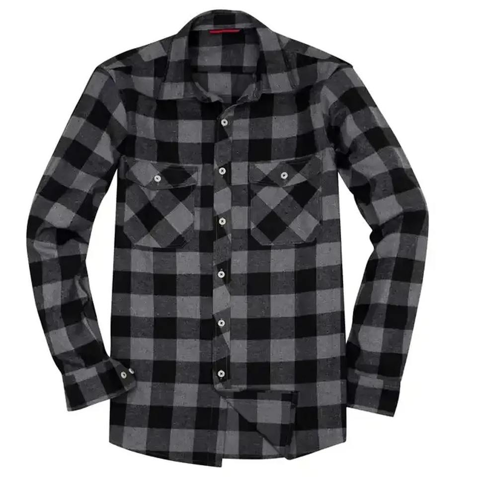 เสื้อเชิ้ตลำลองผ้าสักหลาดลายสก็อตแขนยาวพอดีตัวสำหรับผู้ชายใส่โลโก้ได้ตามต้องการ