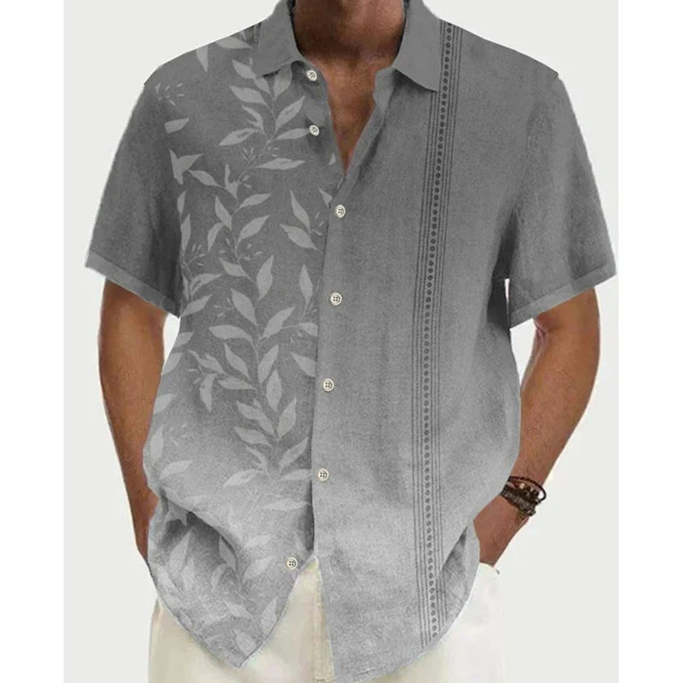 เสื้อกระดุมผู้ชายเสื้อฮาวายฤดูร้อนเสื้อแขนสั้นลายนกแก้ว