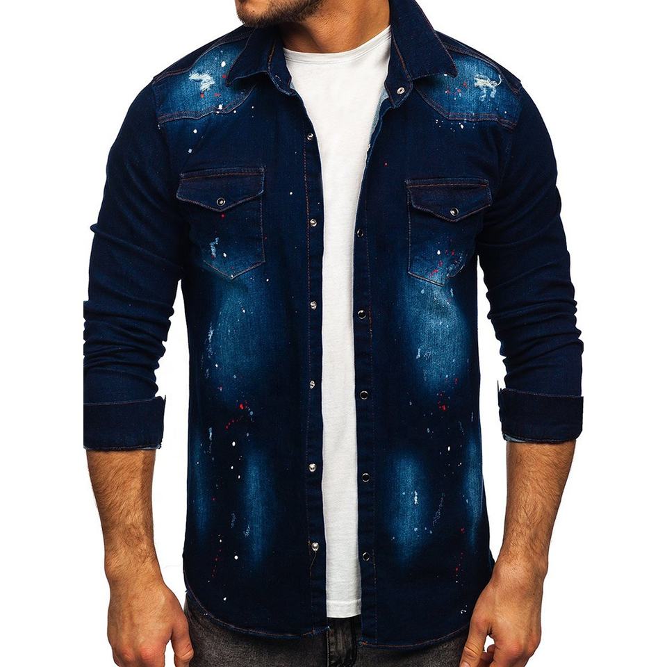 เสื้อแจ็กเก็ตมอเตอร์ไซด์สำหรับผู้ชายผ้าเดนิมทรงโอเวอร์ไซส์ไซส์ผ้าเดนิมสำหรับผู้ใหญ่ซักขนาดกลาง