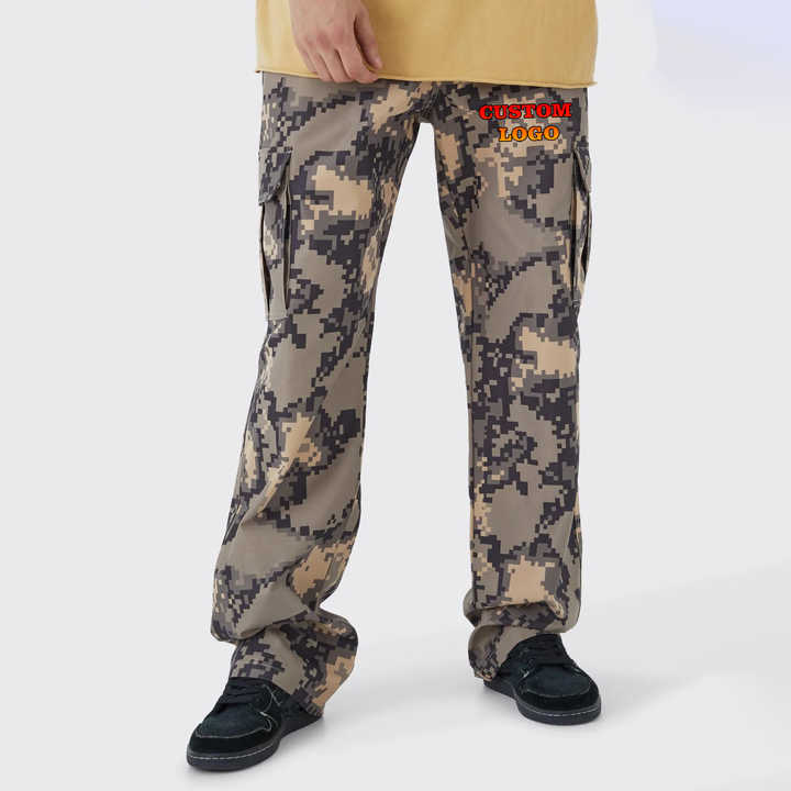 กางเกงคาร์โก้ลายพรางผู้ชาย สไตล์สตรีทแวร์ หลายกระเป๋า กางเกงสำหรับกิจกรรมกลางแจ้ง OEM กางเกงผู้ชาย