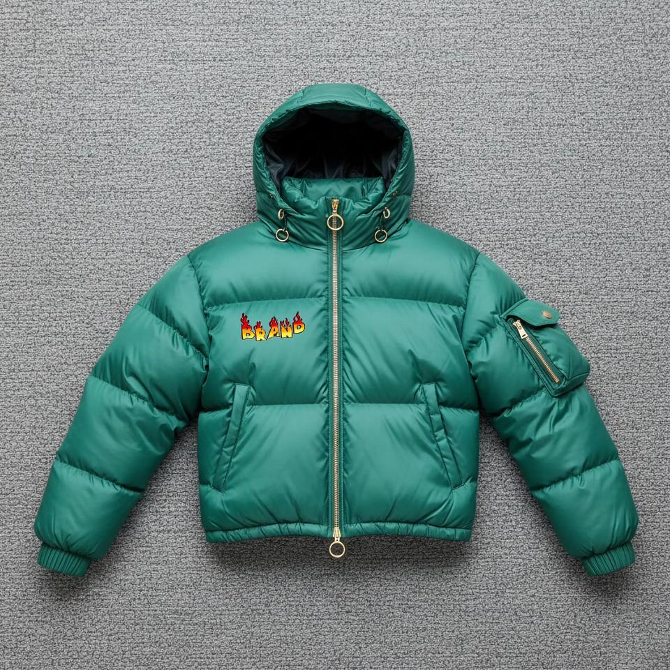 เสื้อแจ็คเก็ตพัฟเฟอร์ผ้าแคนวาสสำหรับผู้ชาย คอตั้ง มีฮู้ด ป้องกันแบคทีเรีย บุฉนวน สีเขียวมรกต สำหรับฤดูหนาว