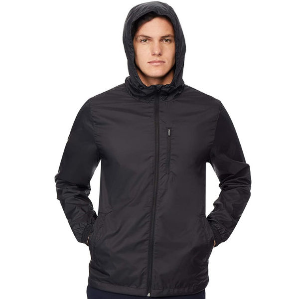 เสื้อแจ็คเก็ตผ้าใบกันลมมีฮู้ดสำหรับผู้ชาย, ผ้าฝ้าย100% มีซิประบายอากาศกันน้ำ & ลุยหิมะสำหรับวิ่งและชายหาด