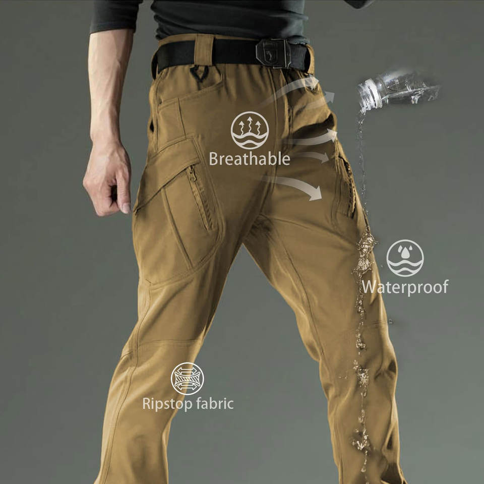 กางเกงคาร์โก้ผู้ชาย กางเกงเดินป่าลำลองผู้ชาย หลายกระเป๋า กางเกงเดินป่ากลางแจ้งขนาดใหญ่ เสื้อผ้าผู้ชาย กางเกงขายาวทรงตรงและกางเกงขายาว